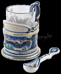 В комплекте: подстаканник, хрустальный стакан, керамическая ложка Материал: керамика с позолотой Производитель Гжель