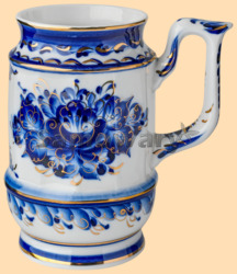 Кружка Гжель Пивная Кристалл позолоченная (600 мл) (арт. 10206)