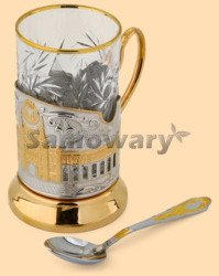Материал никелированная латунь с позолотой В комплекте подстаканник, хрустальный стакан, чайная ложка Производитель Кольчугино