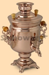 Самовар: - объем 3 литра - высота самовара 36 см - ширина самовара по ручки 29 см - материал: латунь, покрытая медью с лаком (красноватый цвет) - ручки самовара изготовлены из пластика (по вашему желанию самовар может комплектоваться как чёрными, так и белыми ручками) - покрытие не боится воды - мощность ТЭНа 1 кВт, время закипания 15-20 минут - вес самовара 2,6 кг - производитель Россия (Тула)