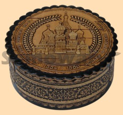 Шкатулка из уральской бересты Храм Василия Блаженного №1 (8,5 см) (арт. 11320)