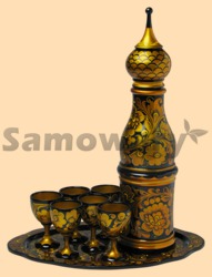 Штоф - высота 46 смПоднос - размер 25 на 40 смРюмки - высота 10 смХохлома, ручная работа