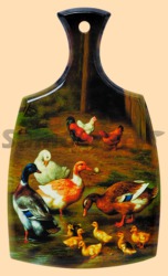 Размер 11,5 на 19 см Цветной красочный рисунок, сверху покрыт лаком Материал доски: дерево Толщина разделочной доски 8 мм Производитель Россия