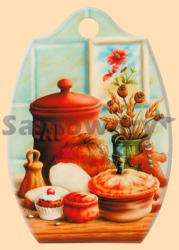 Размер 20 на 29 см Цветной красочный рисунок, сверху покрыт лаком Материал доски: дерево Толщина разделочной доски 8 мм Производитель Россия