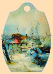 Доска разделочная круглая большая Домик зима (арт. 13210)