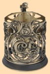 Диаметр основания - 7,5 см, высота подстаканника (без стакана) - 9 см. Материал - латунь (литье) Покрытие - никель (чернение) Данный подстаканник дополнительно можно покрыть серебром и позолотить некоторые его элементы. Это увеличит стоимость подстаканника на несколько тысяч рублей, более подробную информацию по срокам и ценам вы можете уточнить у наших менеджеров. Производитель Россия