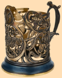 Диаметр основания - 7,5 см, высота подстаканника (без стакана) - 9 см. Материал - латунь (литье) Покрытие - никель (чернение) Данный подстаканник дополнительно можно покрыть серебром и позолотить некоторые его элементы. Это увеличит стоимость подстаканника на несколько тысяч рублей, более подробную информацию по срокам и ценам вы можете уточнить у наших менеджеров. Производитель Россия