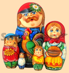 Каталог » Матрёшки » Матрёшки 5-ти местные (сюжетные) » Матрёшка Мужик с петухом (5 мест)