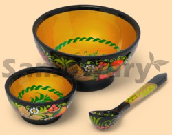 В наборе 1 большая плошка, 6 маленьких плошек, 6 ложек Высота большой плошки 6,5 см, диаметр 13,5 см Высота маленькой плошки 4 см, диаметр 8,5 см Длина ложки 16 см Ручная роспись Материал дерево Производитель Россия