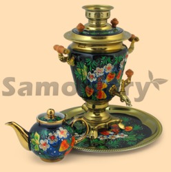Каталог » Самовары ЭЛЕКТРИЧЕСКИЕ » Самовары электрические на 3л в наборе (расписные - цветы и ягоды) » Набор электрический Цветы - ягодки (3л)