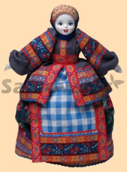 Высота куклы на чайник 36 см Диаметр основания 20 см Используется для сохранения тепла заварочного чайника, который ставится на самовар Материал куклы- натуральный лён Лицо и руки изготовлены из фарфора, расписаны вручную Производитель Россия