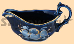 "Глухой кобальт" - это особый вид росписи, когда блестящая темно-синяя глазурь покрывает все изделие, а по ней наносится тонкий, графичный рисунок золотом. Также, в процессе росписи может быть использована белая надглазурная краска, отчего она становится как бы зеркальным отражением традиционной гжельской техники, когда синие цветы превращаются в белые, а белый фон становится синим, создавая эффект морозного узора. К сожалению, на фотографиях очень сложно передать всю глубину цвета кобальтовой глазури и богатство росписи. Однако, достаточно просто взять в руки такое изделие, чтобы навсегда влюбиться в него.