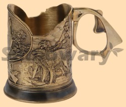 Диаметр основания - 7,5 см, высота подстаканника (без стакана) - 9 см. Материал - латунь (литье) Покрытие - никель (чернение) Данный подстаканник дополнительно можно покрыть серебром и позолотить некоторые его элементы. Это увеличит стоимость подстаканника на несколько тысяч рублей, более подробную информацию по срокам и ценам вы можете уточнить у наших менеджеров. Производитель Россия