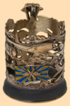 Подстаканник с цветными эмалями. Эмаль - это непрозрачная цветная стекловидная масса, которой покрывают поверхность металлических изделий. Диаметр основания - 7,5 см, высота подстаканника (без стакана) - 9 см. Материал - латунь (литье) Покрытие - никель (чернение) Данный подстаканник дополнительно можно покрыть серебром и позолотить некоторые его элементы. Это увеличит стоимость подстаканника на несколько тысяч рублей, более подробную информацию по срокам и ценам вы можете уточнить у наших менеджеров. Производитель Россия