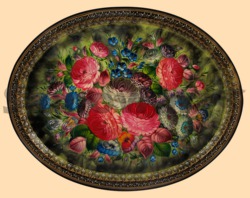Каталог » Подносы Жостово » Подносы Жостово Эксклюзивные » Поднос жостовский Летний букет Гигант на бежевом (овальный большой)