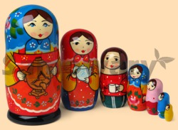 Каталог » Матрёшки » Матрёшки 7-ми местные (сюжетные) » Матрёшка Традиция с самоваром (7 мест)