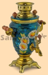 Самовар: - объем 1,5 литра - высота самовара 33 см - ширина самовара по ручки 24 см - материал: латунь - расписан вручную, покрыт лаком - мощность ТЭНа 1 кВт, время закипания 15 минут - вес самовара 2 кг - производитель Тула