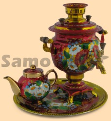 Каталог » Самовары ЭЛЕКТРИЧЕСКИЕ » Самовары электрические на 3л в наборе (расписные - цветы и ягоды) » Набор электрический Маки и ромашки на красном (3л)