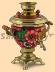 Самовар: - объем 2 литра - высота самовара 32 см - ширина самовара по ручки 30 см - материал: латунь - расписан вручную, покрыт лаком - мощность ТЭНа 1 кВт, время закипания 18-20 минут - вес самовара 2,3 кг - производитель Россия (Тула)