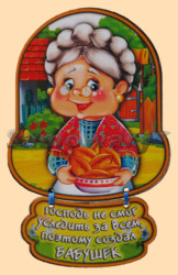 Каталог » Магниты » Магниты разные » Магнит Бабуля с пирогами (деревянный)