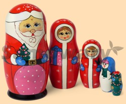 Каталог » Матрёшки » Матрёшки 5-ти местные (сюжетные) » Матрёшка Дед Мороз с подарками большой (5 мест)