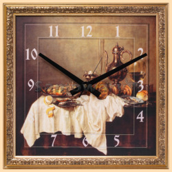 Размер полотна часов 40 на 40 см В часах используются следующие часовые механизмы - Сейко (Япония), UTS (Германия), YT (Гонконг) Питание – одна батарейка АА (пальчиковая) Рамка (багет), используемая при обрамлении часов - Испания или Италия (по вашему желанию возможна замена рамки на любую другую) Возможны следующие варианты исполнения часов: с открытым часовым механизмом, с часовым механизмом под стеклом, с полностью закрытой стеклом картиной По желанию клиента возможно нанесение любой надписи на часы, условия и стоимость этой услуги уточняйте у менеджеров. Внимание: рамка может отличаться от представленной на фото, уточняйте внешний вид часов у менеджеров! При отсутствии данной позиции в наличии, изготовление часов займет не более одной недели. Производитель Россия