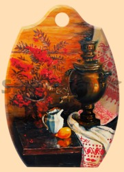 Доска разделочная круглая большая Самовар с рябиной (арт. 20670)