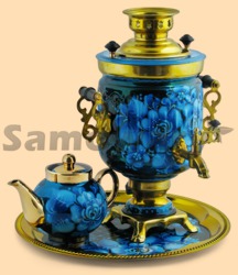 Каталог » Самовары ЭЛЕКТРИЧЕСКИЕ » Самовары электрические на 3л в наборе (расписные - цветы и ягоды) » Набор электрический Нежность кобальт (3л)
