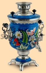 Каталог » Самовары ЭЛЕКТРИЧЕСКИЕ » Самовары электрические на 3л (расписные - цветы и ягоды) » Самовар электрический Садовый на голубом (3л)