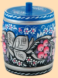Каталог » Роспись - Синяя по серебру » Банки и бочонки Синяя по серебру роспись » Бочонок новая хохлома Для сыпучих