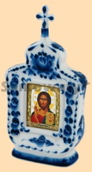 Каталог » Гжель » Киоты, лики, образы, плакетки Гжель » Киот Гжель Образ Иисуса Христа №3