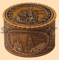 Шкатулка из уральской бересты Храм Василия Блаженного №2 (8,5 см) (арт. 24725)