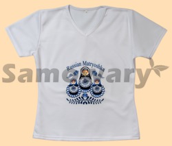 Каталог » Текстиль » Футболки с принтами » Футболка Матрёшка Гжель (размер M)