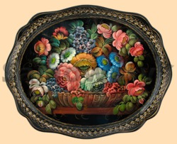 Каталог » Подносы Жостово » Подносы Жостово Эксклюзивные » Поднос жостовский Корзинка (фигурный большой)