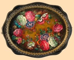 Поднос изготовлен в деревне Жостово - основание металл, далее грунтовка, РУЧНАЯ роспись в несколько заходов, 2-3 слоя лака чтобы защитить рисунок и сам поднос (причем лаком он покрывается с двух сторон - спереди и сзади). ВСЕ подносы изготовлены полностью вручную, частными художниками, которые живут в деревне Жостово, именно поэтому эти подносы и называются ЖОСТОВСКИМИ. Но они не фабричные, поэтому и цена дешевле! Сзади нет клейма фабрики, но зато на рисунке с лицевой стороны есть подпись художника, который нарисовал этот поднос. И да, этот художник обычно раньше как раз и работал на этой Жостовской фабрики. Так что выбор за вами - либо фабричный дороже, либо от частного художника, но который рисует на себя. Причем учтите, фабричные подносы, кроме того что стоят дороже (если сравнивать один и тот же размер подноса) всегда имеют более бедный рисунок и большие фоновые поля.
