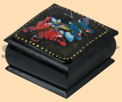 Каталог » Шкатулки » Шкатулки Палех (лаковая миниатюра) » Шкатулка Палех Бабочки (квадратная)
