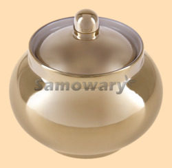 Сахарница изготовлена из керамики и покрыта сверху напылением золотистого цвета, по типу никеля. Эта сахарница идеально подходит к латунным полированным самоварам, по цвету ничем от них не отличается! Высота сахарницы 13 см, диаметр 9 см Диаметр горлышка 7,5 см, диаметр отверстия 6,5 см Объём 500 мл Вес 450 гр. Материал керамика Производитель Россия (г. Ликино-Дулёво)