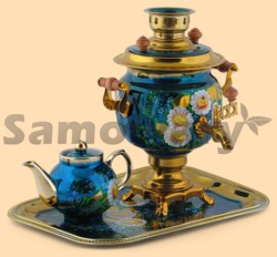 Каталог » Самовары ЭЛЕКТРИЧЕСКИЕ » Самовары электрические на 3л в наборе (расписные - цветы и ягоды) » Набор электрический Ромашки на синем (3л)