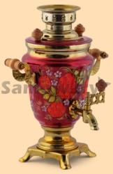Самовар: - объем 1,5 литра - высота самовара 33 см - ширина самовара по ручки 24 см - материал: латунь - расписан вручную, покрыт лаком - мощность ТЭНа 1 кВт, время закипания 15 минут - вес самовара 2 кг - производитель Тула