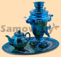В комплекте заварочный чайник и поднос Самовар: - объем 1,5 литра - высота самовара 33 см - ширина самовара по ручки 24 см - материал: латунь - расписан вручную, покрыт лаком - мощность ТЭНа 1 кВт, время закипания 15 минут - вес самовара 2 кг Чайник: - объем чайника 700 мл - вес чайника 500 гр - материал: фарфор - расписан вручную, покрыт лаком Поднос: - размер 35 см - вес подноса 400 гр - форма подноса может отличаться от фото, возможные формы подносов - круг (диаметр 35 см), овал (34 на 46 см), прямоугольник (30 на 40 см), арка (23 на 40 см), ключ (31 на 41 см), более подробную информацию вам предоставит менеджер - производитель Тула