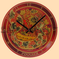 Часы настенные Хохлома (печать на стекле, круглые, 33 см) (арт. 31349)