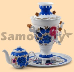 Каталог » Самовары ЭЛЕКТРИЧЕСКИЕ » Самовары электрические на 3л в наборе (расписные - гжель и хохлома) » Набор электрический Иволга (3л)