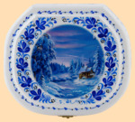 Шкатулка Гжель Домик зима (10,5 на 12,5 см) (арт. 35926)