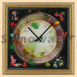 Размер полотна часов 40 на 40 см В часах используются следующие часовые механизмы - Сейко (Япония), UTS (Германия), YT (Гонконг) Питание – одна батарейка АА (пальчиковая) Рамка (багет), используемая при обрамлении часов - Испания или Италия (по вашему желанию возможна замена рамки на любую другую) Возможны следующие варианты исполнения часов: с открытым часовым механизмом, с часовым механизмом под стеклом, с полностью закрытой стеклом картиной По желанию клиента возможно нанесение любой надписи на часы, условия и стоимость этой услуги уточняйте у менеджеров. Внимание: рамка может отличаться от представленной на фото, уточняйте внешний вид часов у менеджеров! При отсутствии данной позиции в наличии, изготовление часов займет не более одной недели. Производитель Россия