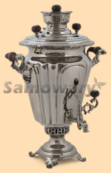 Самовар: - объем 5 литров - антикварный самовар в форме рюмки - материал никелированная латунь - покрытие не боится воды (серебристый цвет) - растапливается с помощью дров или шишек - информационный сертификат об истории самоварной фабрики, на которой изготовлен самовар - вес самовара 5,4 кг