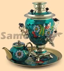 Каталог » Самовары ЭЛЕКТРИЧЕСКИЕ » Самовары электрические на 3л в наборе (расписные - цветы и ягоды) » Набор электрический Садовый на зелёном (3л)