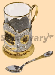Подстаканник Слава защитникам отечества (никель-золото, в наборе, лазерная гравировка) (арт. 37036)