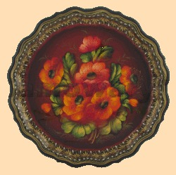 Каталог » Подносы Жостово » Подносы Жостово круглые » Поднос жостовский Маки на красном (круг)