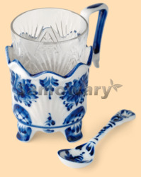 В комплекте: подстаканник, хрустальный стакан, керамическая ложка Материал: керамика Производитель Гжель