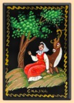 Шкатулка Палех Алёнушка с оленем (квадратная) (арт. 39252)